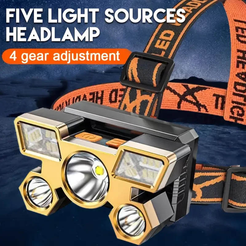 1/2/4db 5LED-es fejlámpa újratölthető, egyszerű USB-s töltési lehetőséggel, kempingezéshez, futáshoz és horgászáshoz vagy otthoni kültéri vészvilágításhoz.