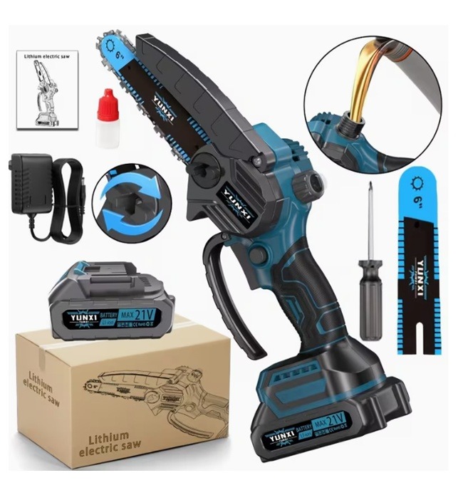 Fedezze fel az otthoni kertészkedés és faápolás egyszerűségét az Olcsó akkus kézi láncfűrésszel YUNXI 6-tól. Ez az akkus elektromos láncfűrész újratölthető lítium akkumulátorral rendelkezik, így sosem kell többé aggódnia a kábelek miatt. Az ergonomikus markolat lehetővé teszi a kényelmes fogást és biztosítja a pontos vágást.