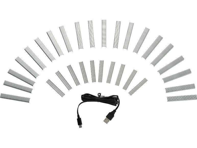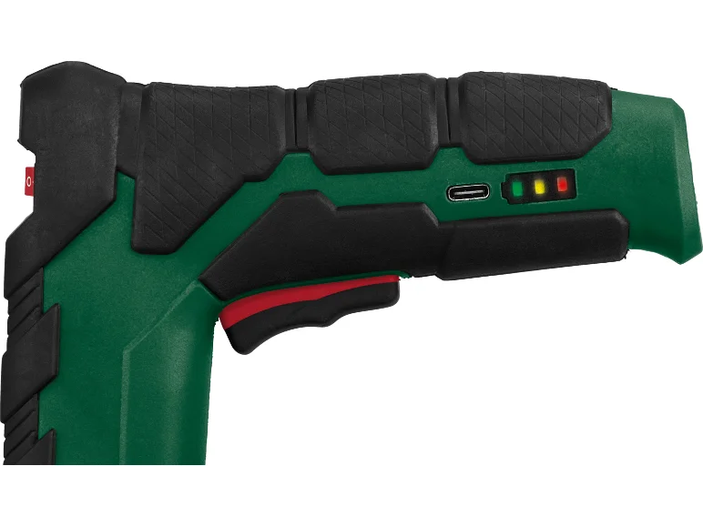 Könnyen kezelhető, akkus tűzőgép, beépített akkumulátorral, mely USB portról és kábellel is tölthető.