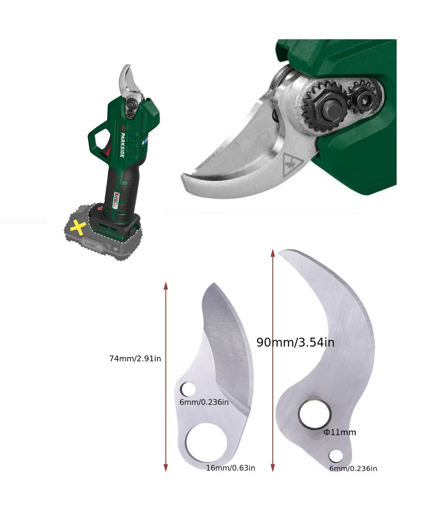 Utángyártott pengék, akkus metszőollóhoz, pontos méretek a mellékelt fotón.