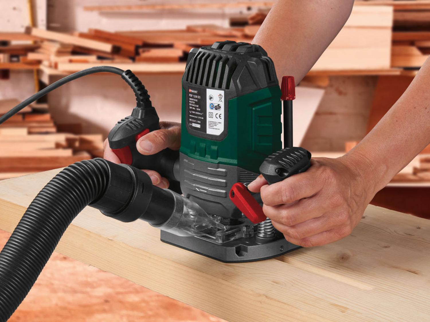 Mellékelt tartozékok: 6 darabos favágó készlet, 2 tokmány (6 és 8 mm, egy előre összeszerelt), 1 párhuzamos ütköző finombeállítással, 1 másolótok, 1 kíváncsi iránytű, 1 adapter külső porelszíváshoz, beleértve a porcsökkentést is, 1 villáskulcs, 1 hatlapfejű kulcs